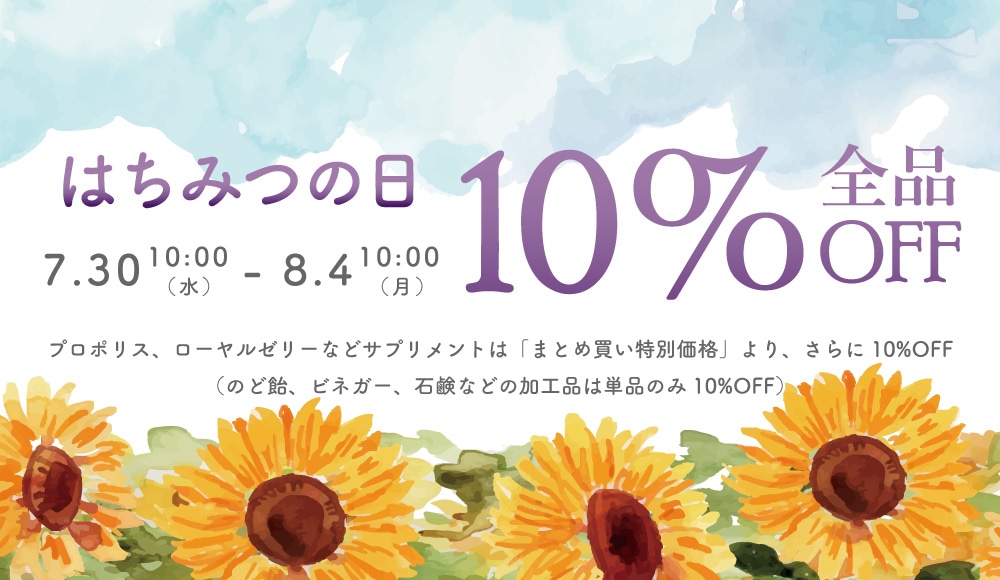 【全品10%OFF】 7月30日~8月4日は、「 はちみつの日WEEK 」