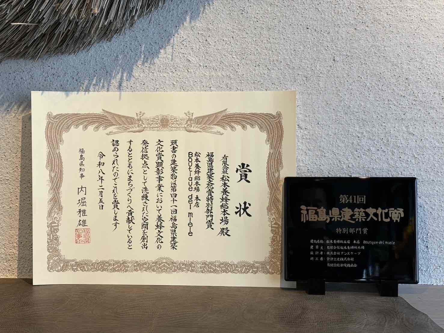 第41回 福島県建築文化賞 表彰式に参列いたしました(Boutique del miele )